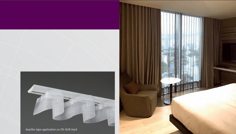 - Zatrzaskiwanie uchwytów i suwaków bezpośrednio na szynie, co ułatwia i przyśpiesza montaż szyn, a także zawieszanie na nich tkanin