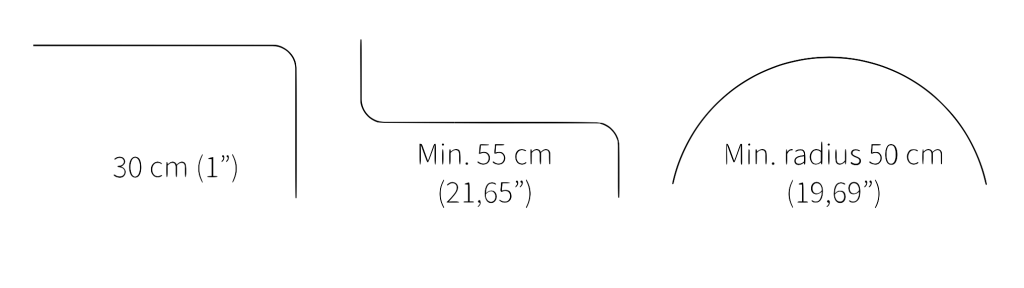 - Łuk ciągły oraz gięcie kątowe o promieniu 20 cm.